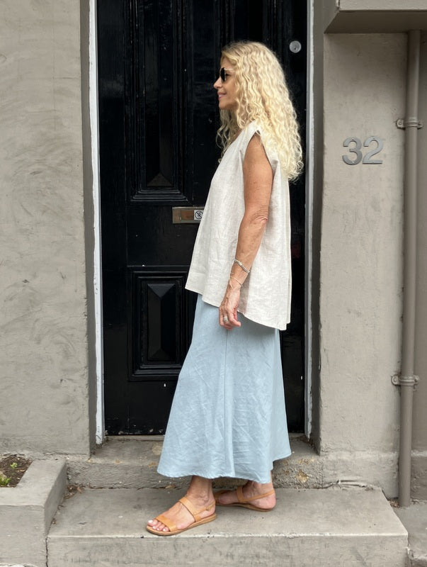 Jiva Midi Linen Prudence Skirt- Eggshell Blue
