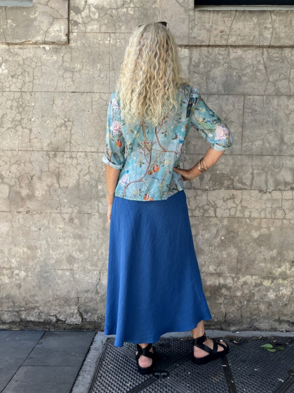 Jiva Midi Linen Prudence Skirt - Dark Blue