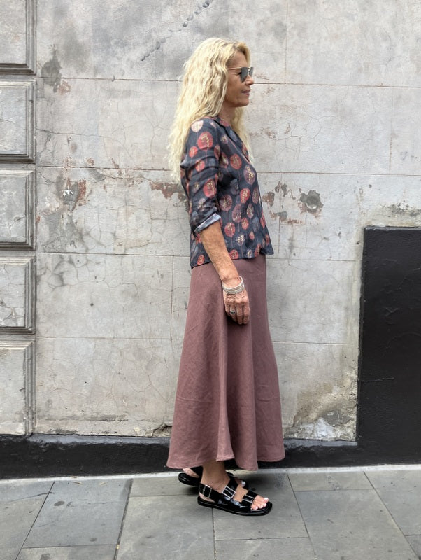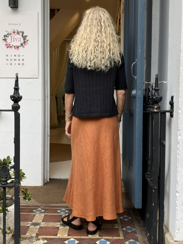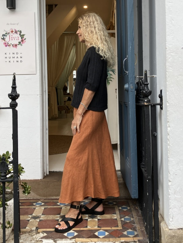 Jiva Midi Linen Prudence Skirt- Cocoa