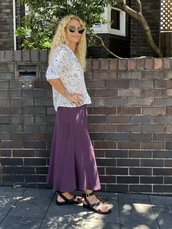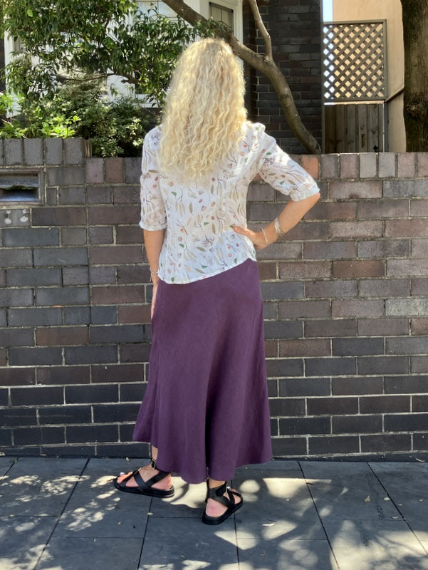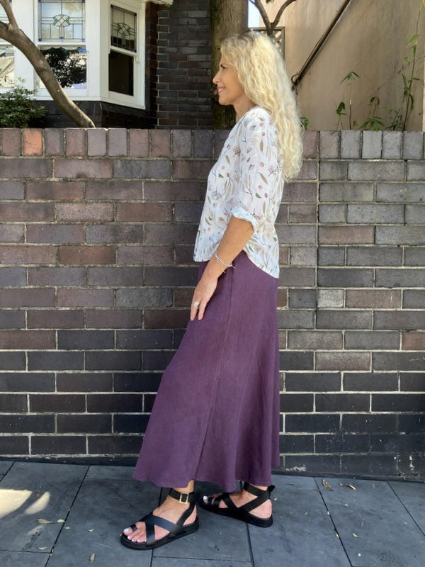 Jiva Midi Linen Prudence Skirt- Vivian Violet