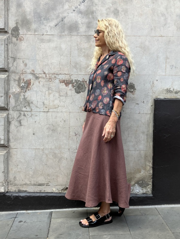 Jiva Midi Linen Prudence Skirt- Patina Print