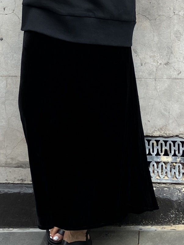Jiva Midi Silk/ Velvet Prudence Skirt- Black