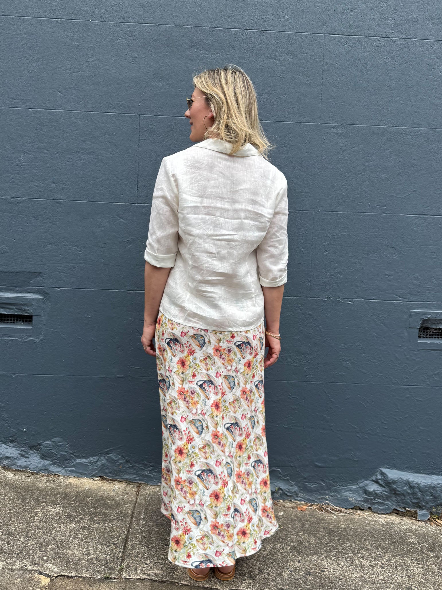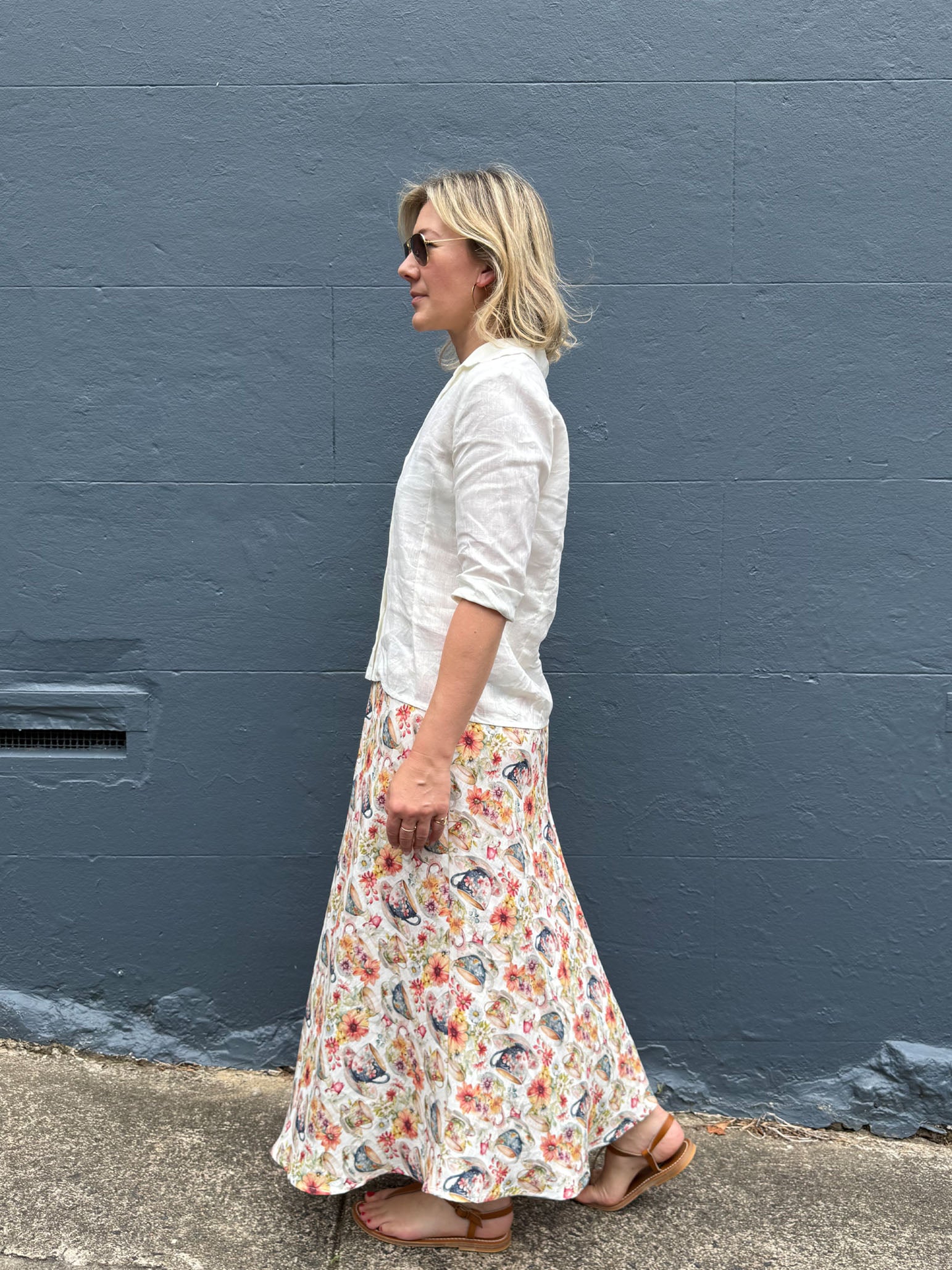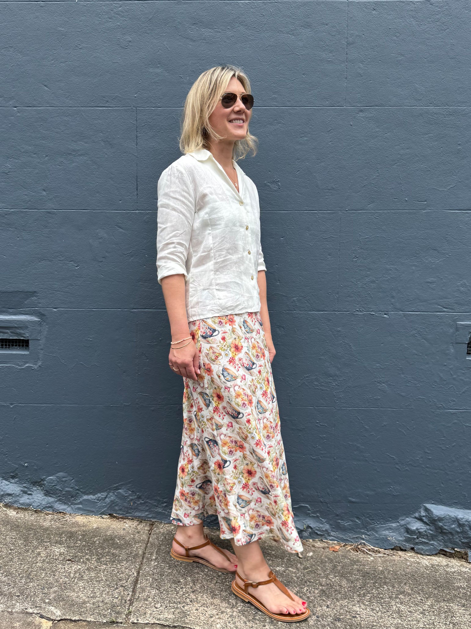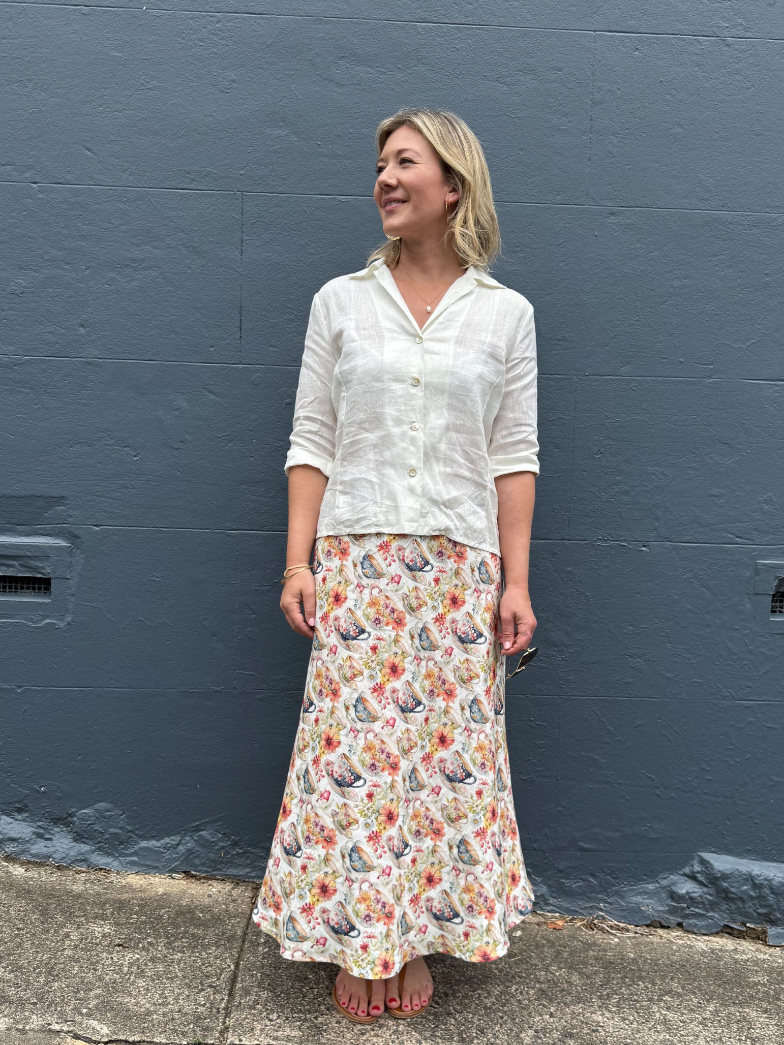 Jiva Midi Linen Prudence Skirt- Tea Cup Print
