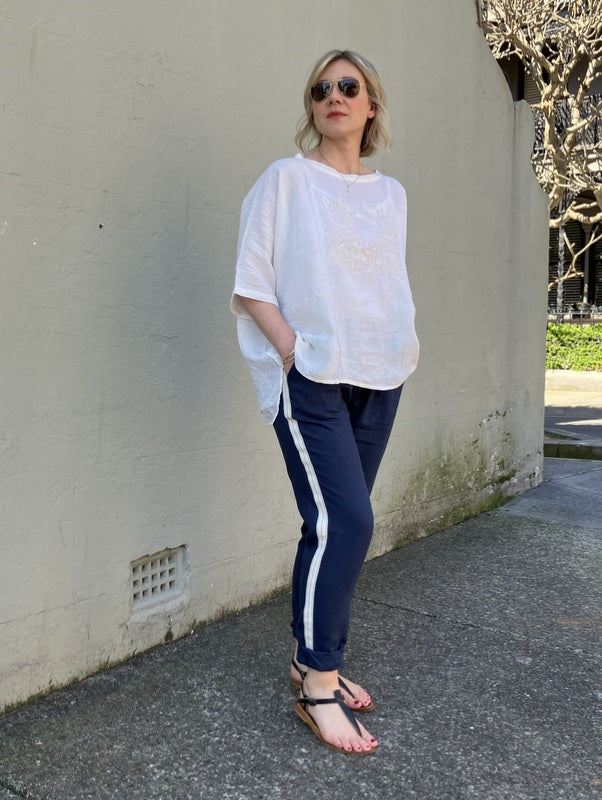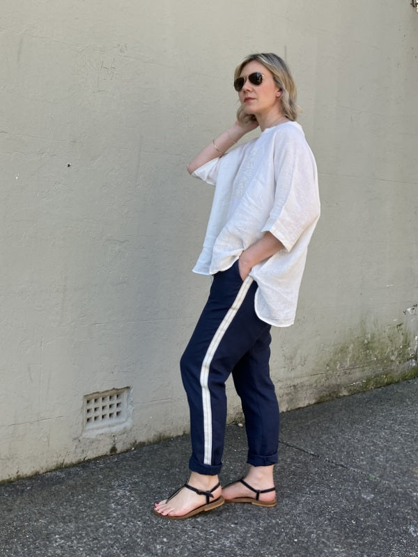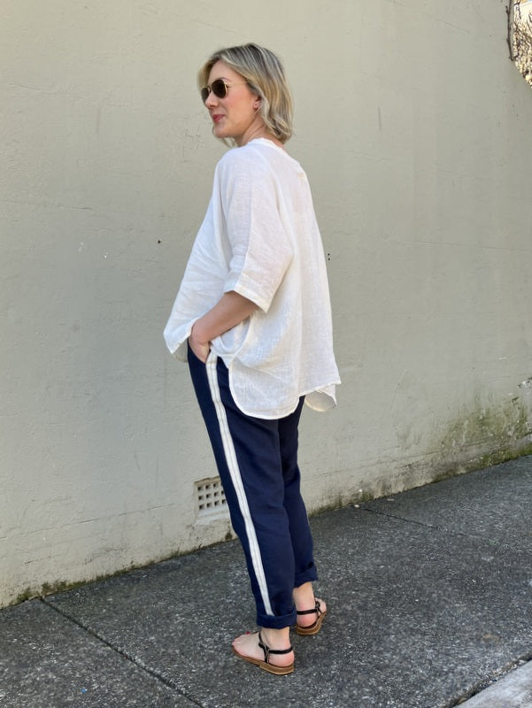 Jiva Mimi Pant - Narrow Leg Linen - Navy/ Striped