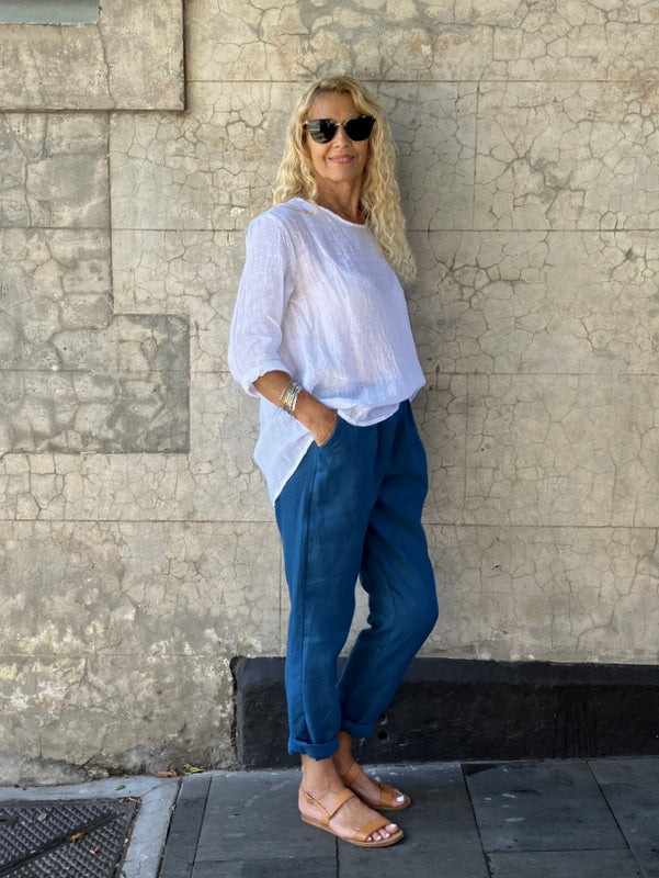 Jiva Mimi Pant - Narrow Leg Linen - Ocean Blue