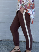 Jiva Mimi Pant - Narrow Leg Linen - Cocoa/ Stripe