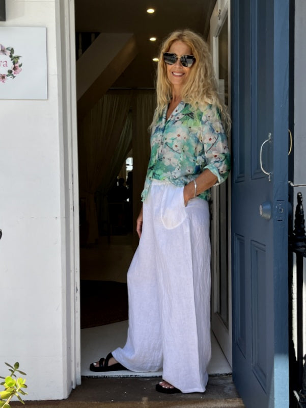 Jiva Mimi Pant (Regular) - Wide Legged Antique Wash Linen - White