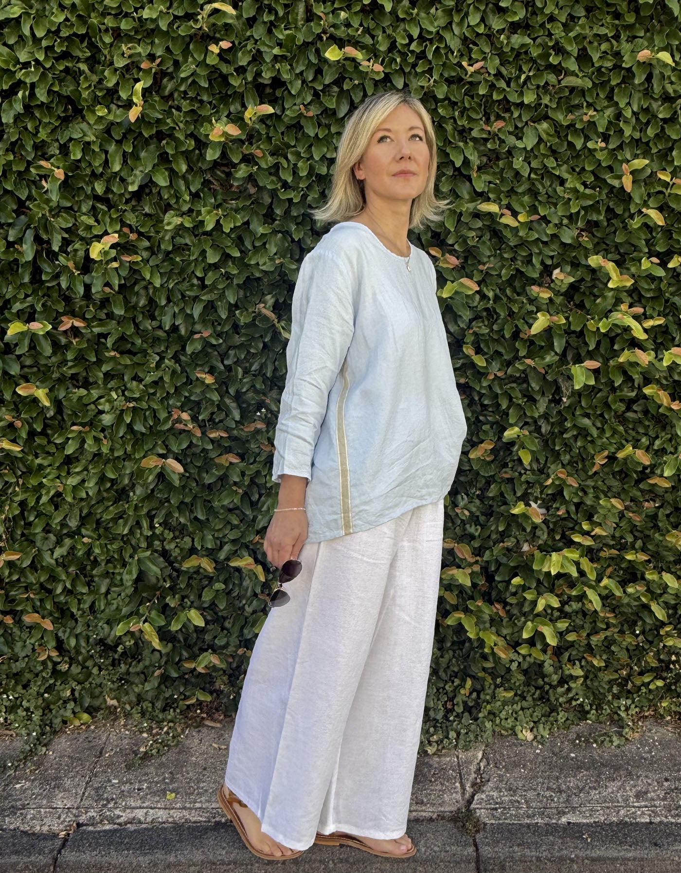 Easy fit full length Mimi pant with elasticated waist band, side pockets and wide leg finish. Wear either on your waist or lower on hips. These pants look fabulous back with our Maria tops, fitted shirts or knits.