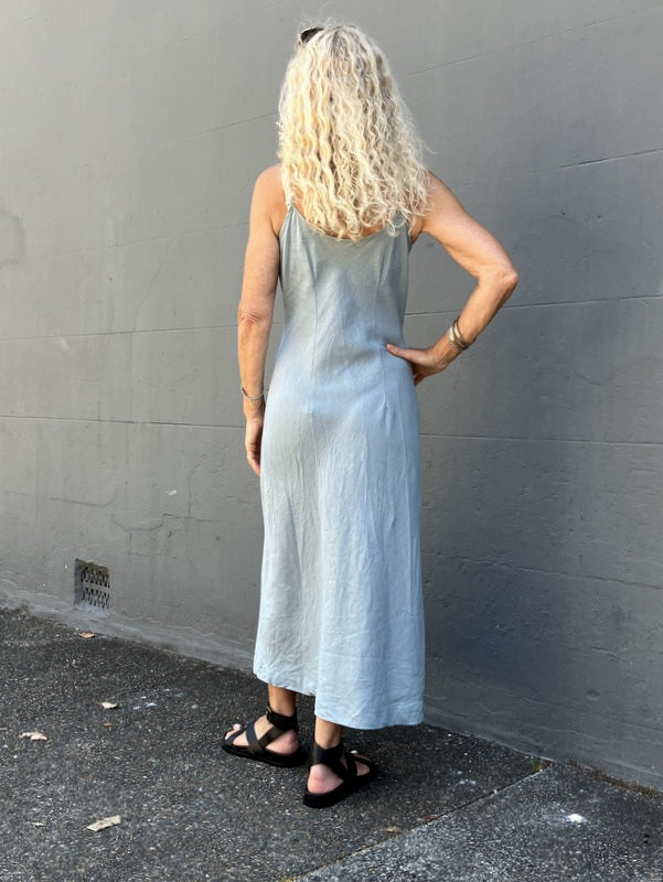 Jiva Antique Wash Linen Shoestring Slip Dress - Seaweed