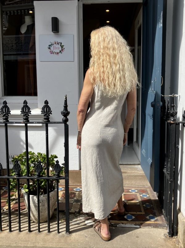 Jiva Antique Wash Linen Shoestring Slip Dress - Natural