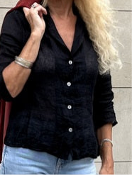 This fabulous fitted shirt is an easy fit button through shirt. Great back with our wide leg or narrow leg Mimi pants or our linen Prudence skirts. Can be worn as a jacket over our linen bias cut slips.
