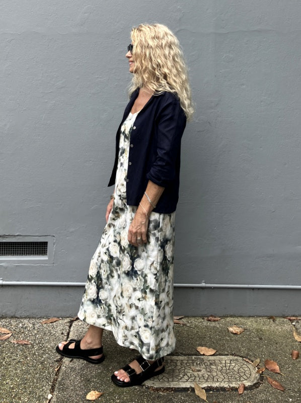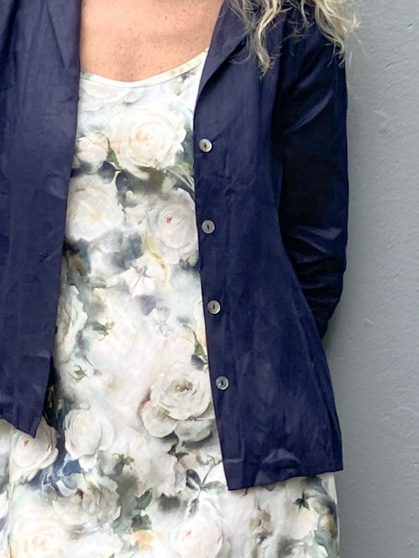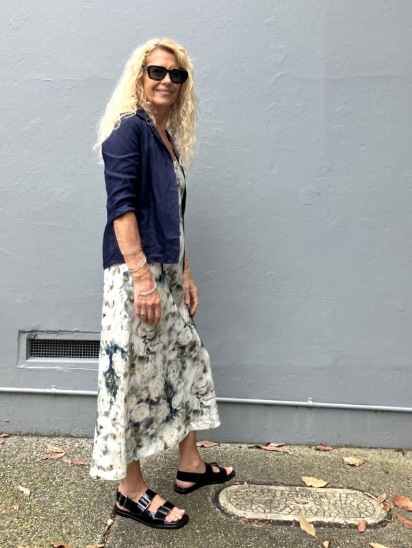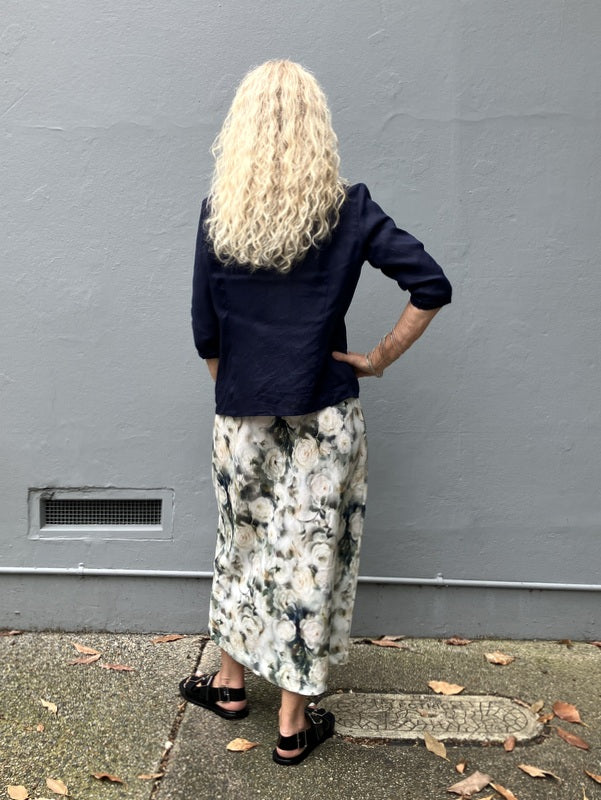 This fabulous fitted shirt is an easy fit button through shirt. Great back with our wide leg or narrow leg Mimi pants or our linen Prudence skirts. Can be worn as a jacket over our linen bias cut slips.