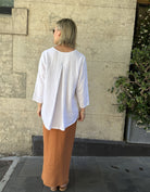 Beautiful Maria is an A-line bodice shirt with 3/4 sleeve length and a side stripe detail. Back detail is an inverted pleat to add shape. Lovely worn back with our wide or narrow Mimi leg pants, Bias cut Prudence skirts or linen slip dresses.