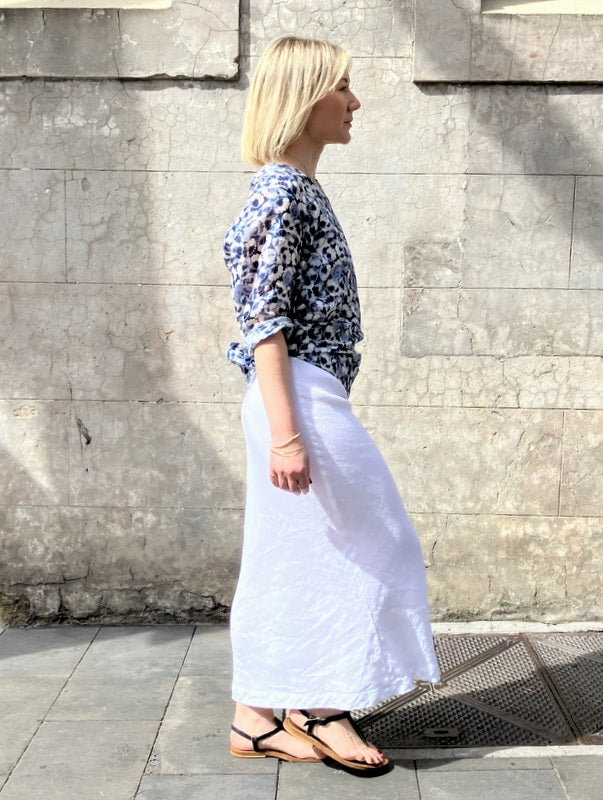 Beautiful Maria is an A-line bodice shirt with 3/4 sleeve length. Back detail is an inverted pleat to add shape. Lovely worn back with our wide or narrow Mimi leg pants, Bias cut Prudence skirts or linen slip dresses.