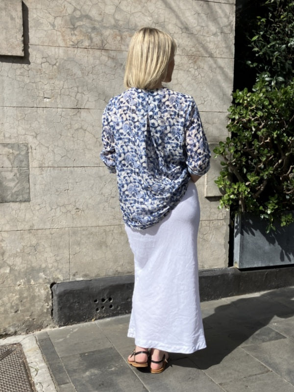Jiva Maria Shirt - Blue Daisy Print - Ramie