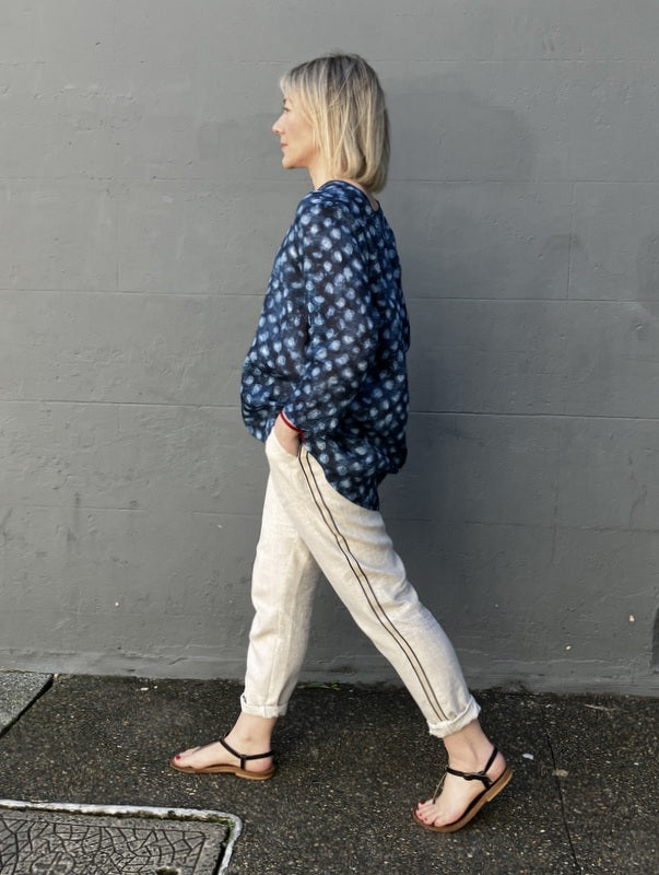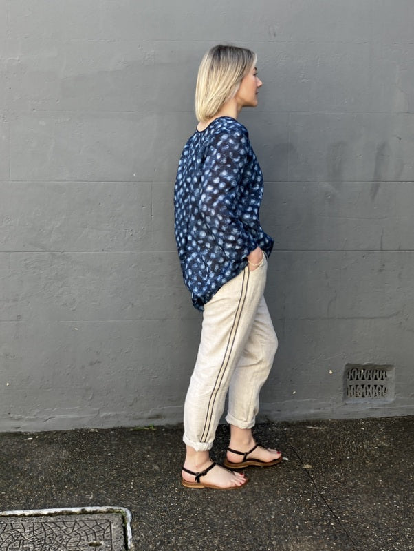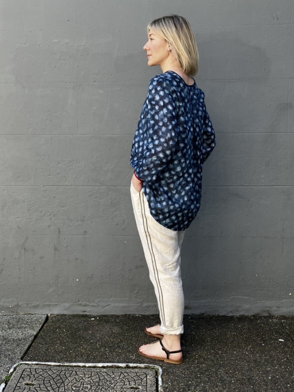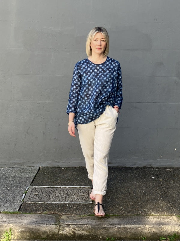 Beautiful Maria is an A-line bodice shirt with 3/4 sleeve length. Back detail is an inverted pleat to add shape. Lovely worn back with our wide or narrow Mimi leg pants, Bias cut Prudence skirts or linen slip dresses.