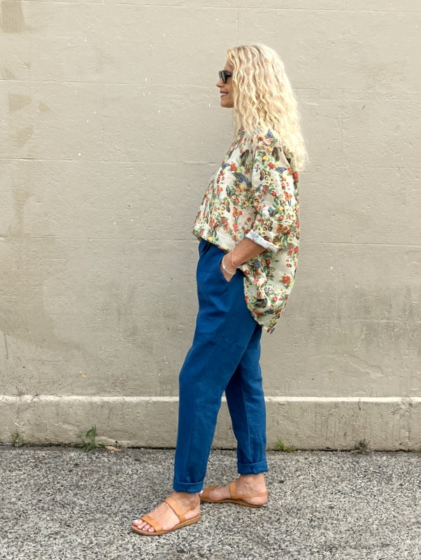 Beautiful Maria is an A-line bodice shirt with 3/4 sleeve length. Back detail is an inverted pleat to add shape. Lovely worn back with our wide or narrow Mimi leg pants, Bias cut Prudence skirts or linen slip dresses.
