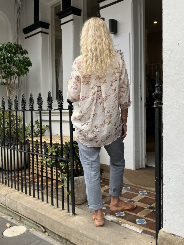 Jiva Maria Shirt - Golden Bird Print - Ramie