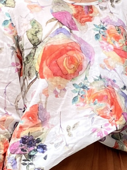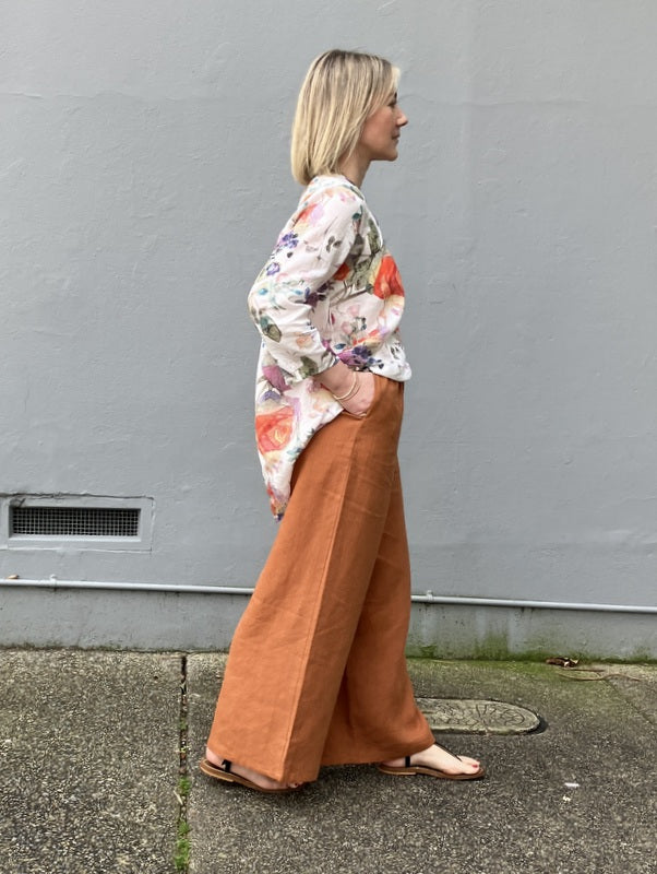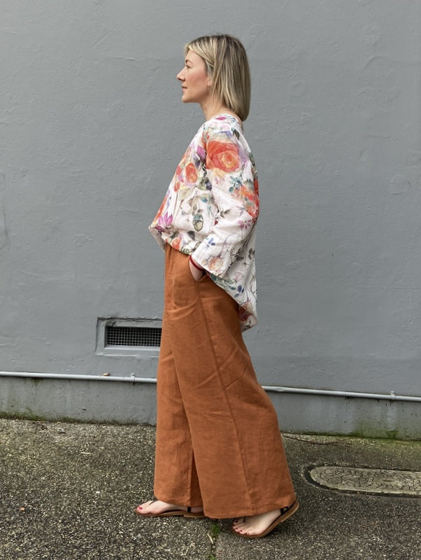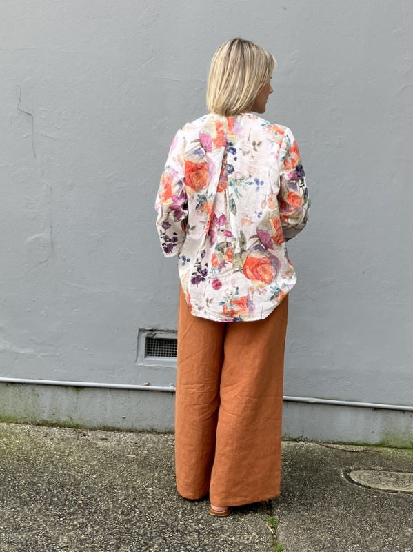 Jiva Maria Shirt - Orange Rose Print - Ramie