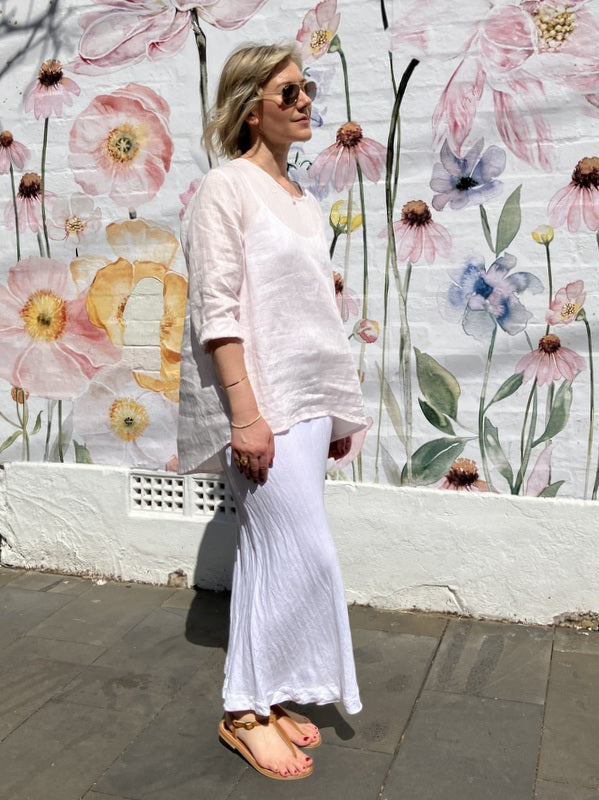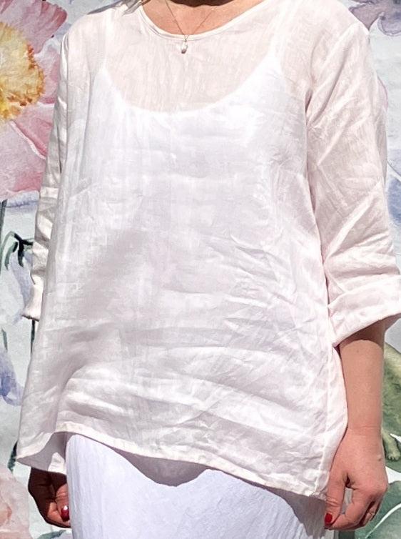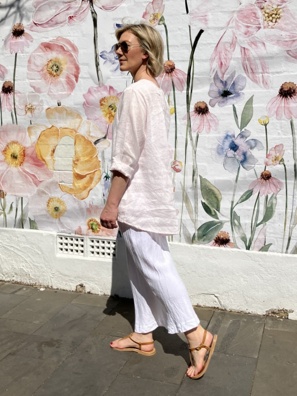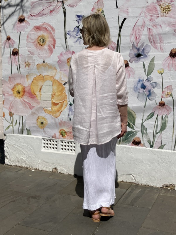 Beautiful Maria is an A-line bodice shirt with 3/4 sleeve length. Back detail is an inverted pleat to add shape. Lovely worn back with our wide or narrow Mimi leg pants, Bias cut Prudence skirts or linen slip dresses.