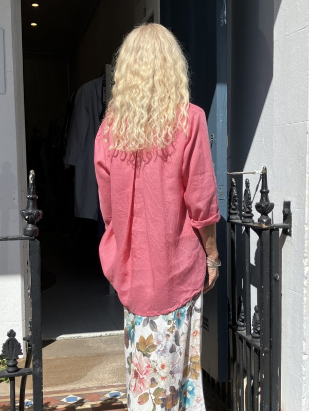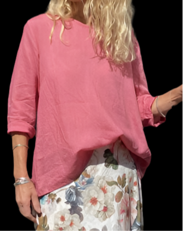 Beautiful Maria is an A-line bodice shirt with 3/4 sleeve length. Back detail is an inverted pleat to add shape. Lovely worn back with our wide or narrow Mimi leg pants, Bias cut Prudence skirts or linen slip dresses.