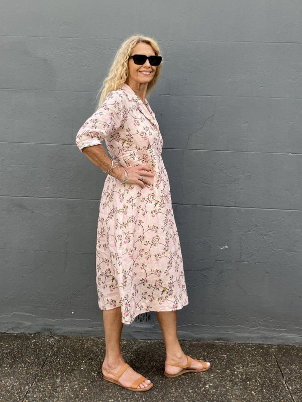 Jiva 50's Dress - Blossom and Bird Print - Ramie