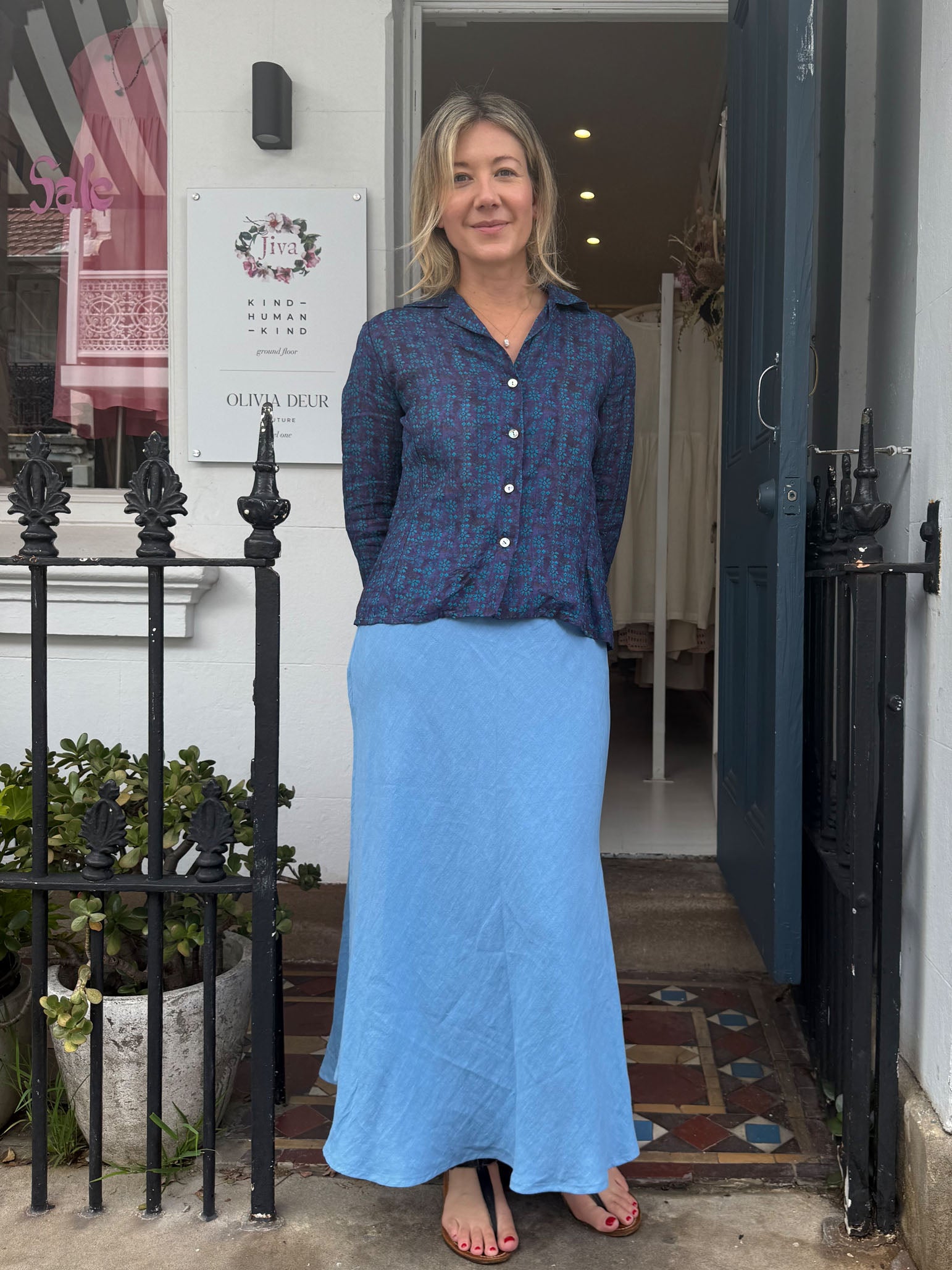 Jiva Midi Linen Prudence Skirt- Cornflower Blue