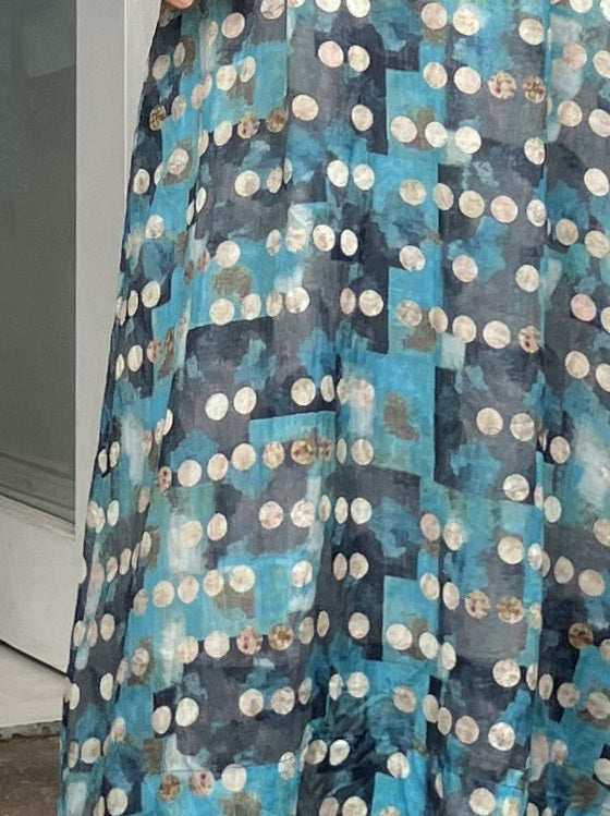 Jiva 50's Dress - Blue Square/ Beige Spot Print - Ramie