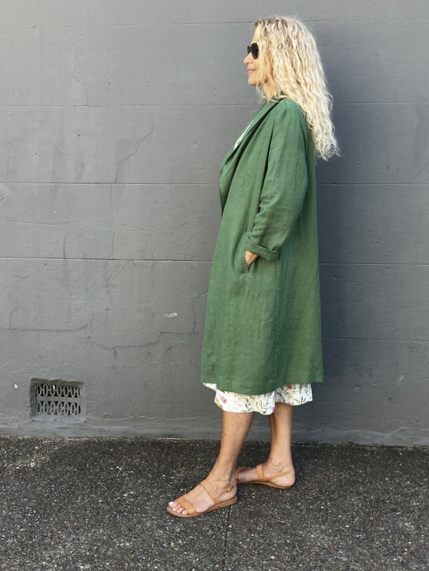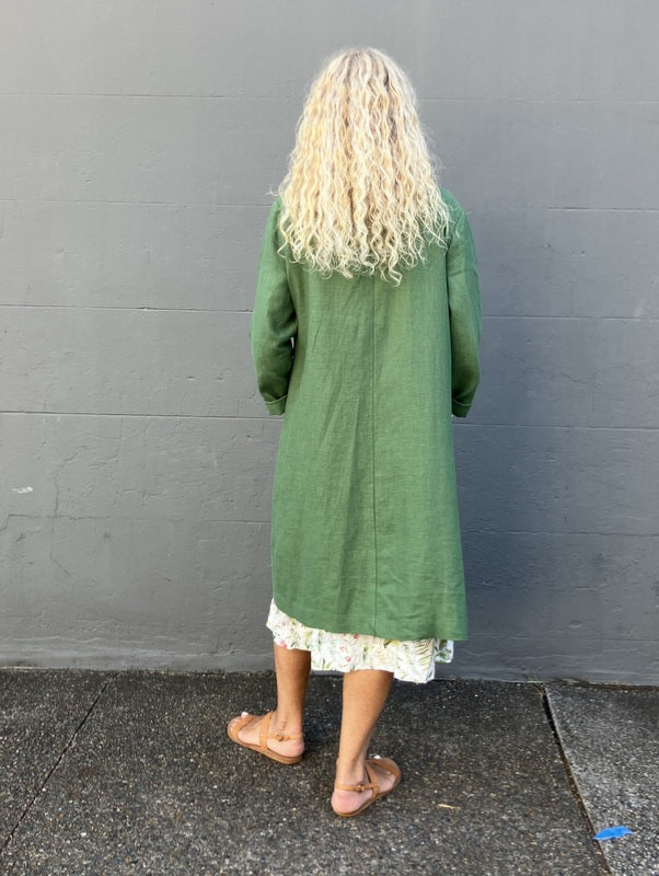 Jiva Antique Wash Linen Catherine Coat - Forever Green